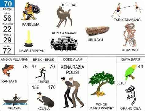 Salah satu angka yang populer adalah erek erek 70. Dalam buku mimpi bergambar, angka ini disimbolkan dengan berbagai gambar unik, seperti panglima, keledai, rumah makan, tarik tambang, lampu minyak, ubi kayu, hingga tokoh D. Karno. Selain itu, angka 70 juga dilengkapi dengan angka pelarian, kode alam, gaya baru, dan tafsir Primbon Jawa yang memperkaya makna tafsir mimpi tersebut.
